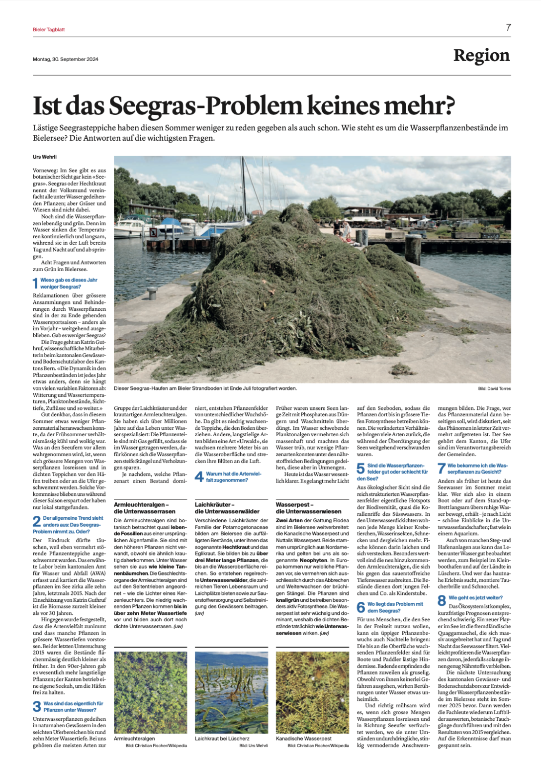 Lästige Seegrasteppiche haben diesen Sommer weniger zu reden gegeben als auch schon. Wie steht es um die Wasserpflanzenbestände im Bielersee? Die Antworten auf die wichtigsten Fragen.
