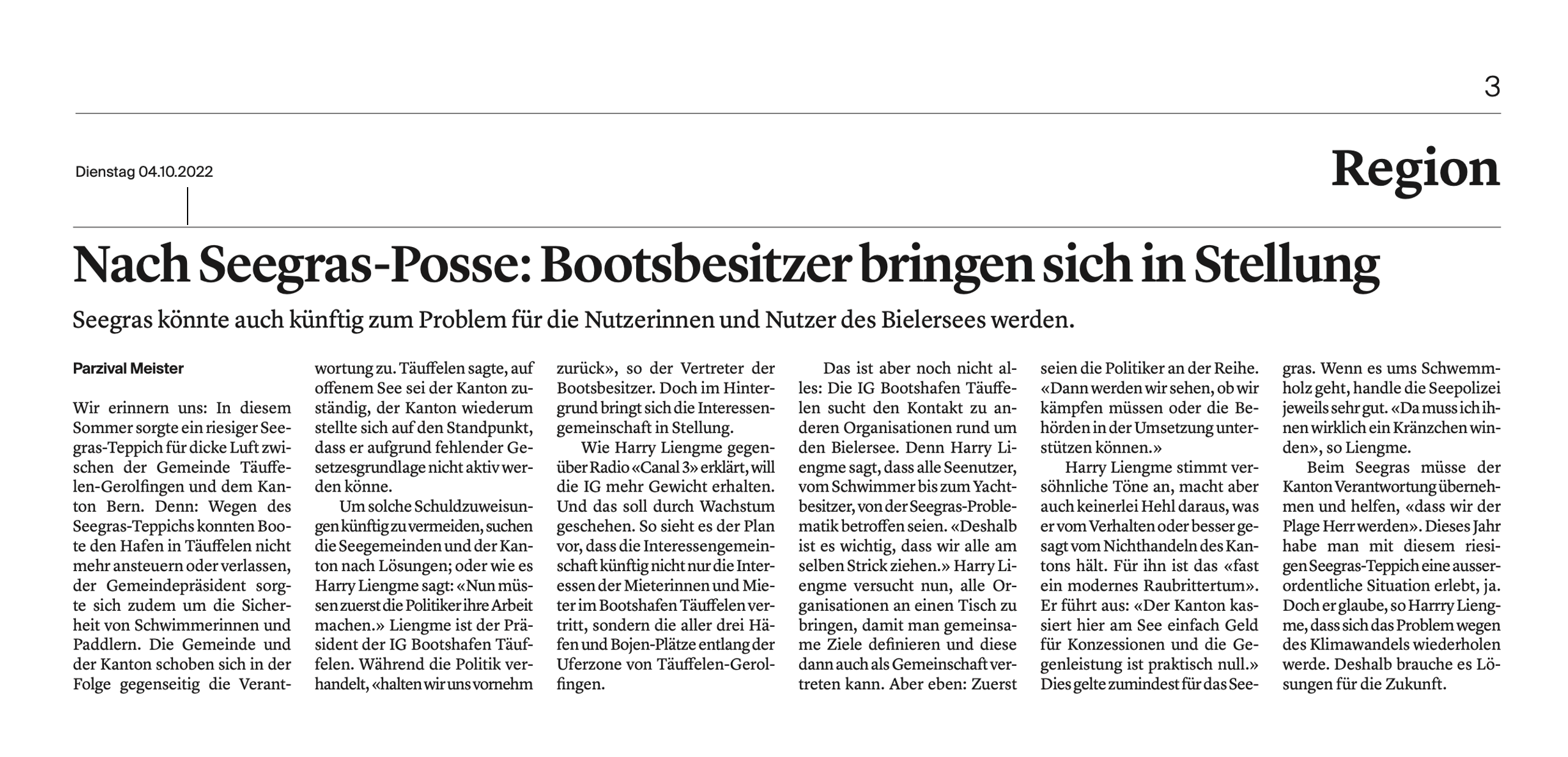 Seegras könnte auch künftig zum Problem für die Nutzerinnen und Nutzer des Bielersees werden.