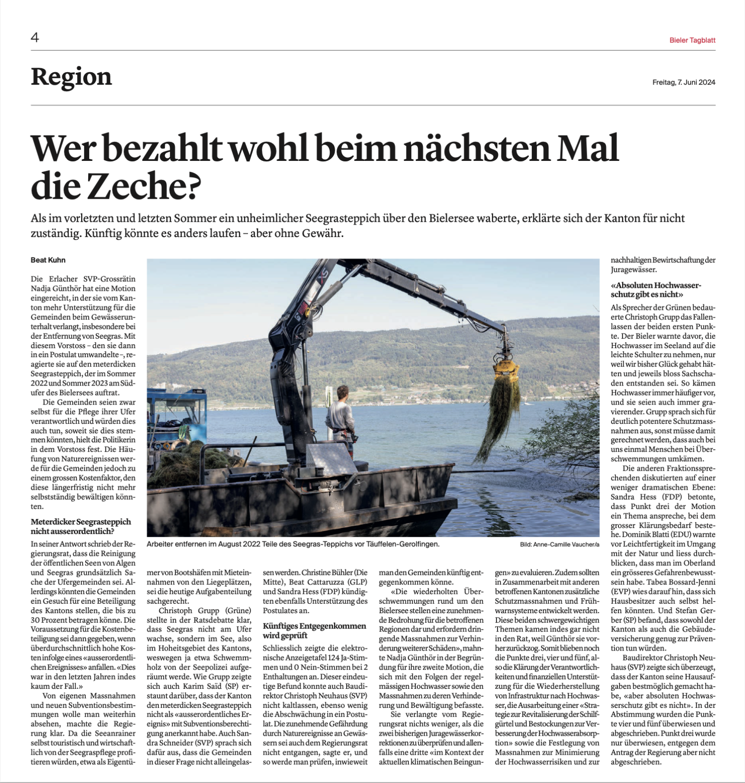 Als im vorletzten und letzten Sommer ein unheimlicher Seegrasteppich über den Bielersee waberte, erklärte sich der Kanton für nicht zuständig. Künftig könnte es anders laufen - aber ohne Gewähr.